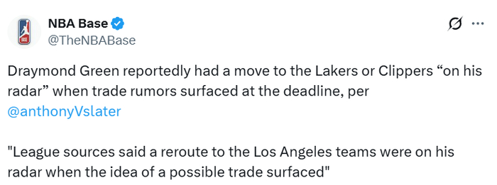 格林可以在今年夏天跳出合同,再次进入完全自由球员市场。联盟消息人士称,当交易传闻出现时,加盟洛杉矶两支球队(湖人和快船)的想法曾出现在他的考虑范围内。